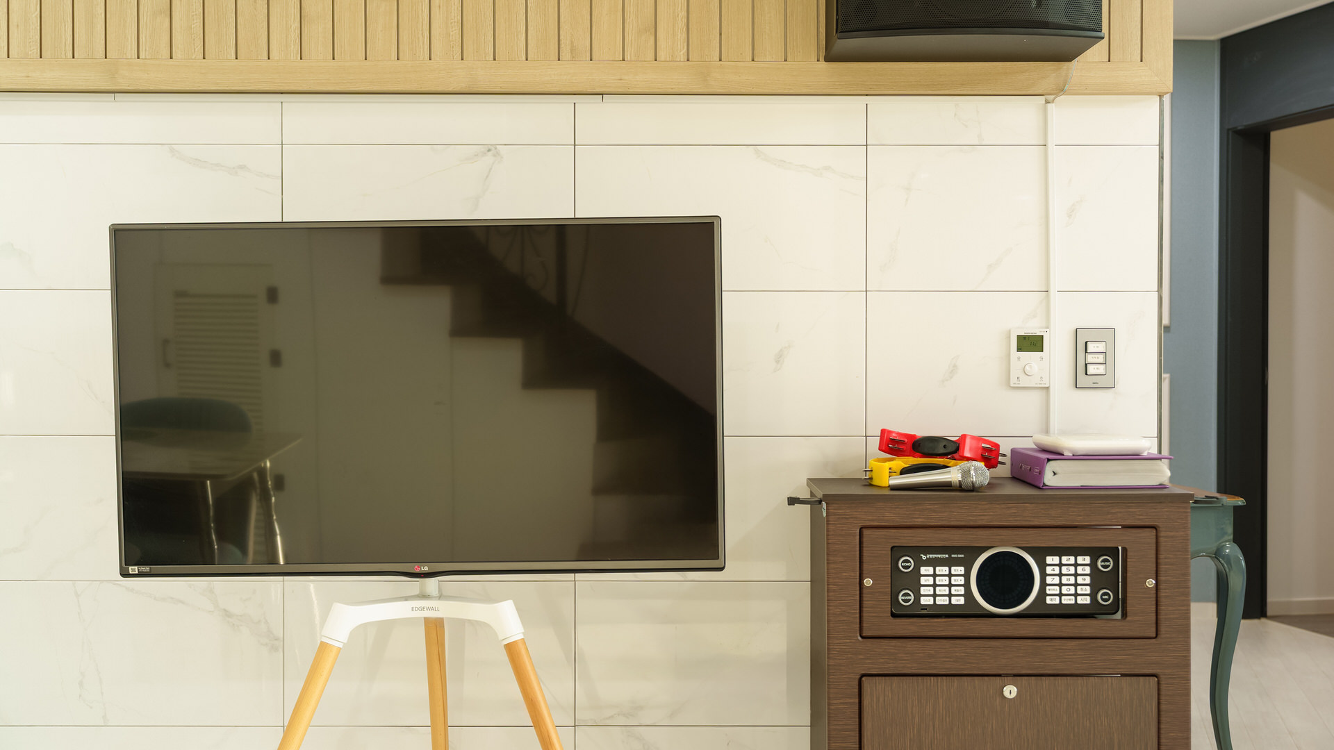 웃음과 노래가 자연스럽게 이어지는 실내 공간입니다.